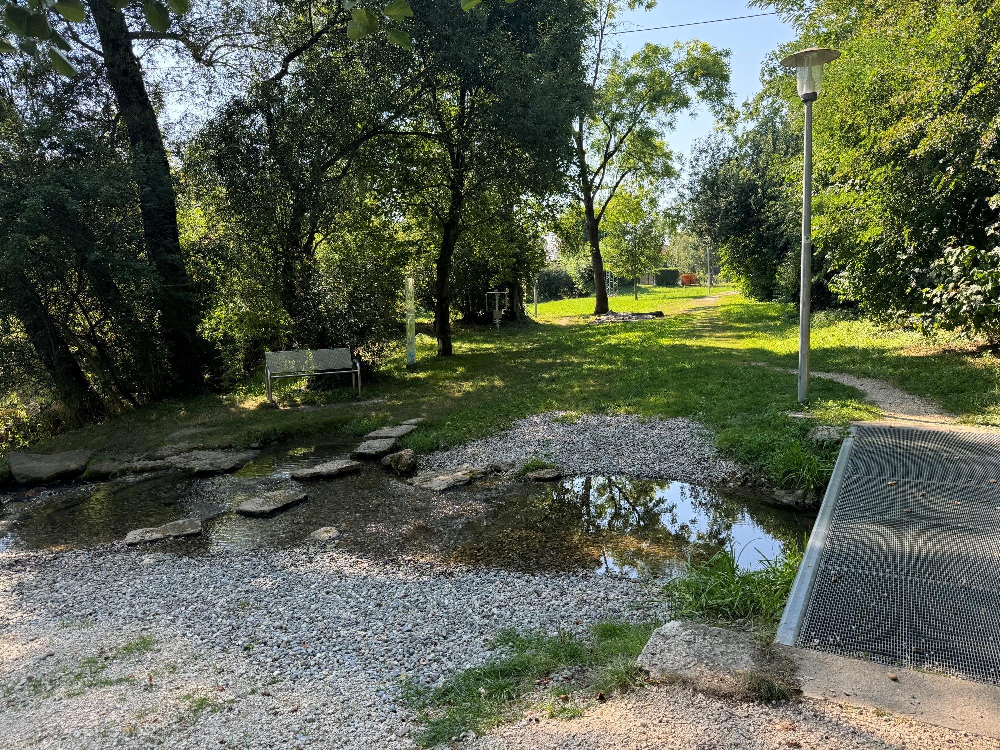 Fitness im Freien, ein Spaziergang durch Gräser und Blumen, die Füße ins Wasser baumeln lassen, gemütlich auf der Bank sitzen und den Vögeln lauschen oder ein Spiel auf dem Boulplatz, all das ist im Nebelbachpark möglich. Es ist ein Ort der Begegnung für Jung und Alt, direkt am Nebelbach gelegen, der zum Verweilen einlädt. Gläserne Hinweisstelen informieren zusätzlich über die Bachmuschel, die Kopfweide und das Mädesüß.
