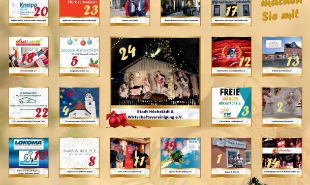Es ist wieder soweit – der Höchstädter Adventskalender, eine Gemeinschaftsaktion der Stadt Höchstädt mit der Wirtschaftsvereinigung Höchstädt e.V., geht in die 6. Runde.