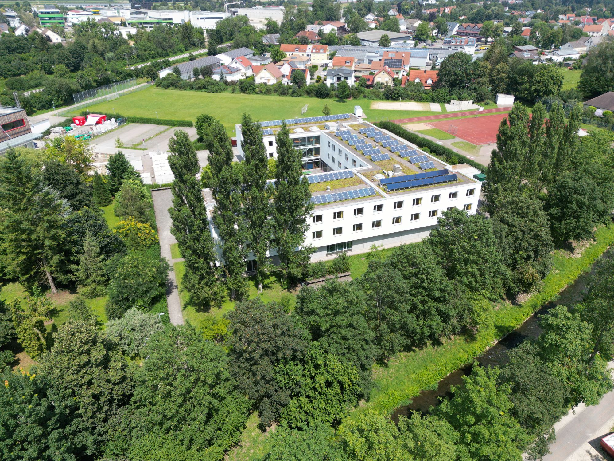 Zum Schulzentrum gehört auch das Schülerwohnheim direkt neben der Schule hinter dem Baugebiet Pfaffenmühle.