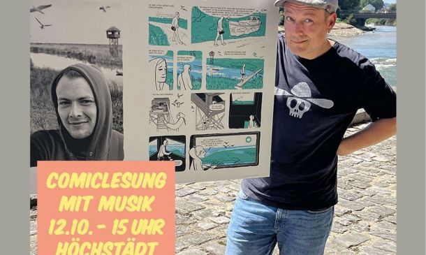 12. Oktober 2025 bis 24. Oktober 2025 Preisgekrönte Comic-Ausstellung „Menschen am Fluss“ von Comic-Künstler Christian Schmiedbauer Stadt Höchstädt