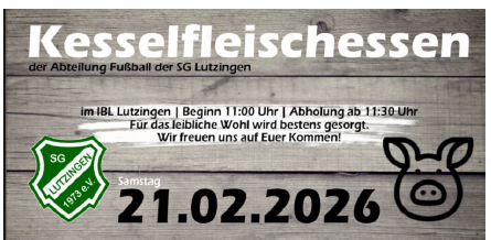 Der Veranstaltungskalender beruht auf den Angaben der Vereine, Organisationen und Veranstalter. Für die Richtigkeit dieser Angaben wird keine Gewähr übernommen. Diese Veranstaltung wurde zuletzt am 14. Januar 2026 aktualisiert. Haben Sie einen Fehler entdeckt? Dann melden Sie sich gerne bei uns.