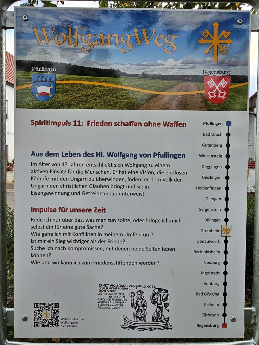 Wussten Sie schon, dass Gremheim eine Etappenstation des Pilgerwegs „WolfgangWeg“ ist? Vielleicht haben Sie schon die WolfgangWeg-Tafel vor der Andreaskirche gesehen?