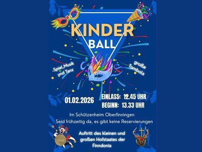 Der Kinderball findet am 1. Februar um 13.33 Uhr (Einlass 12.45 Uhr) im Schützenheim Oberfinningen statt.