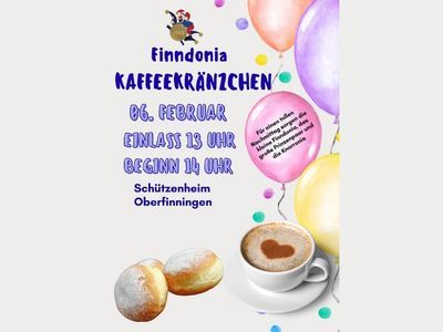 Das Faschingskaffeekränzchen findet am 6. Februar um 14 Uhr im Schützenheim Oberfinningen statt.