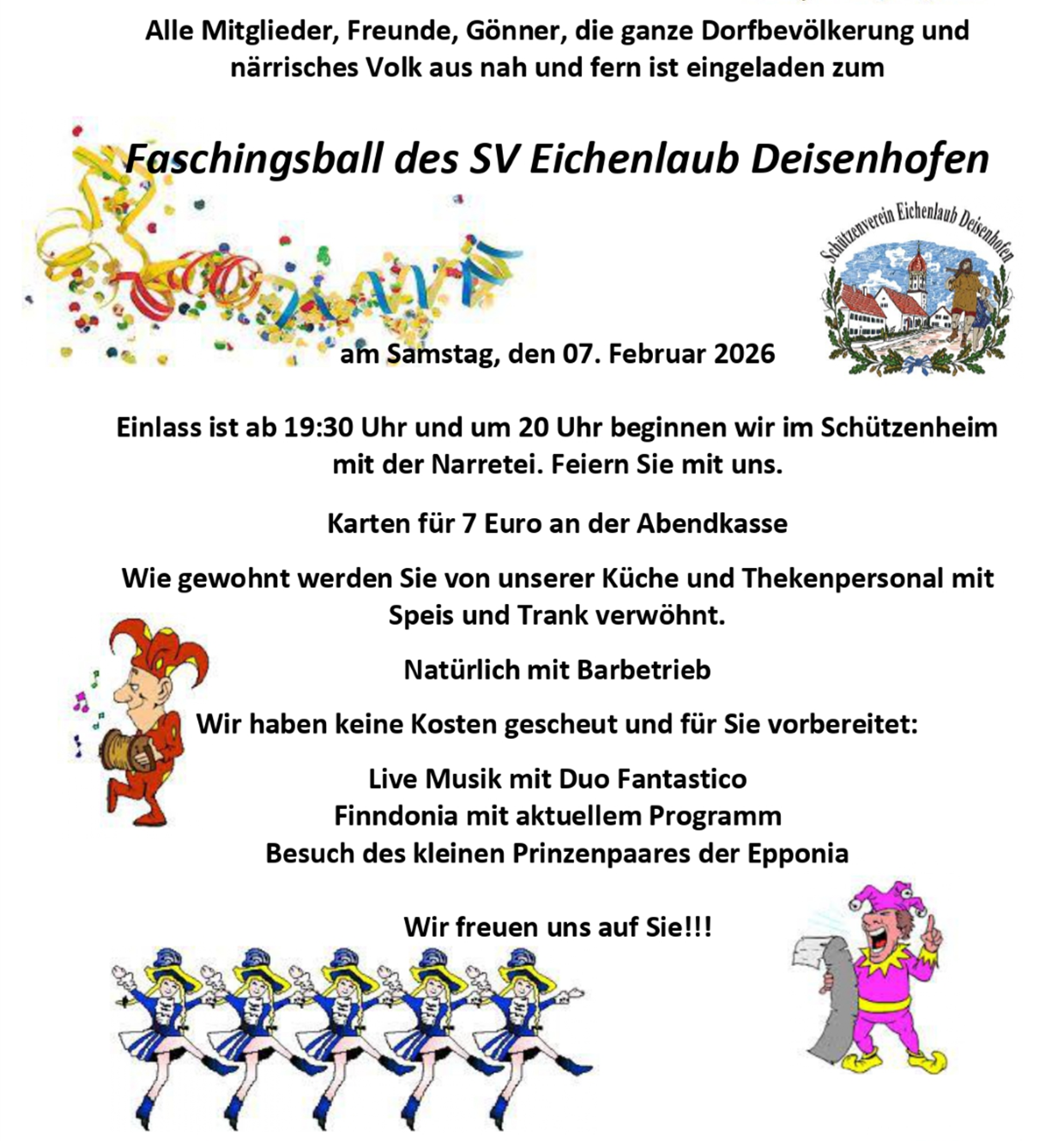 Der Schützenverein SV Eichenlaub feiert am 07.02.2026 im Schützenheim ab 20 Uhr seinen Faschingsball.