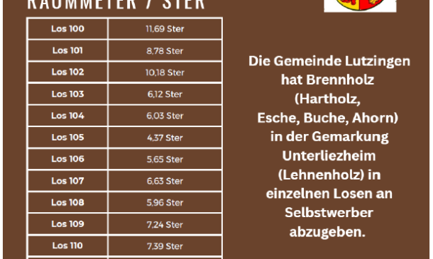 Für die Entsorgung von hackschnitzelfähigem Material bzw. Baumschnitt wird wieder ein temporärer Lagerplatz am Parkplatz des Sportplatzes in Lutzingen errichtet.