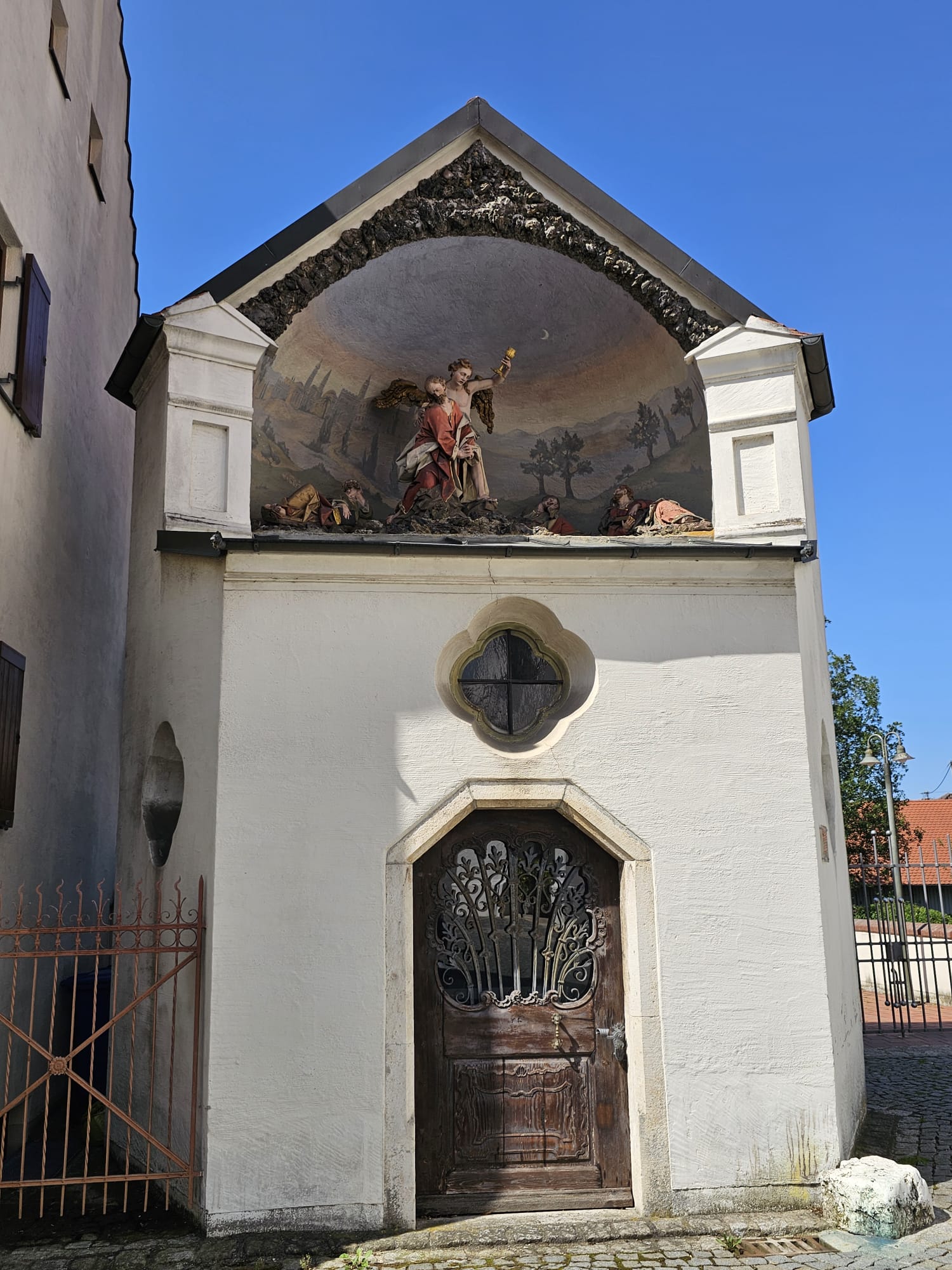 Die barocke Ölbergkapelle, 1664 von Sebastian Hennauer errichtet, spiegelt die Verehrung des Leidens Christi wider. Das Untergeschoss enthält eine Pietà, geschaffen vermutlich von Johann Bapt. Libigo, während die Figuren im Obergeschoss 1760 von Johann Michael Fischer stammen.