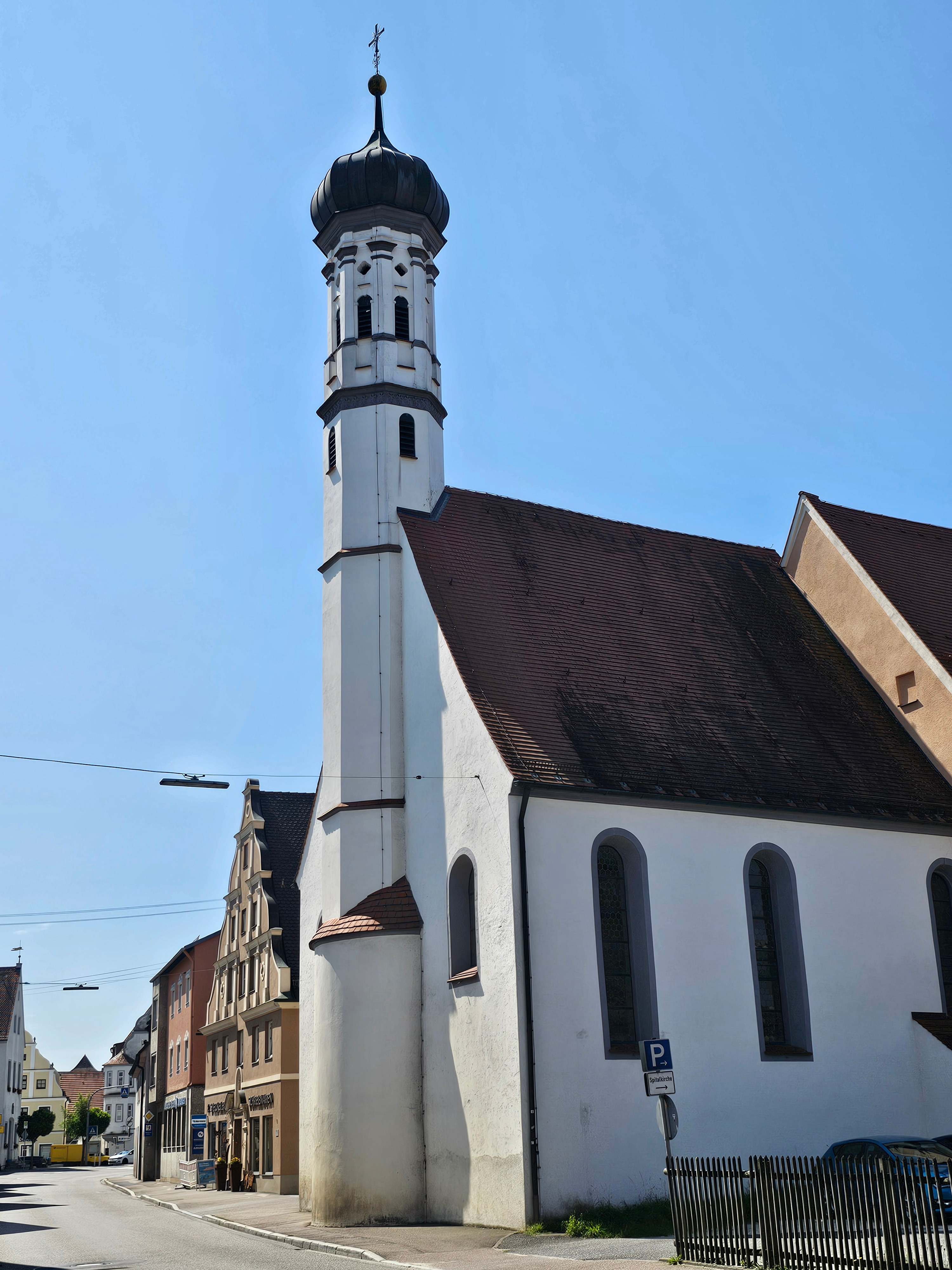 Die jetzige Kath. Spitalkirche HI. Geist, ein Saalbau mit Giebelturm, der mit einer Zwiebelhaube gedeckt ist, wurde um 1590 durch den Burglengenfelder Baumeis- er Leonhard Grieneisen erbaut, der damals am Schlossbau betraut war. Die Assistenzfiguren sowie den Kerkerchristus in der nördlichen Wandnische lieferte Johann Michael Fischer im Jahre 1747. Richtung Westen schließen sich der Kirche das ehemalige Spitalmeistergebäude aus dem 17.Jahrhundert und der dreigeschossige Satteldachbau, die ehemalige Mädchenschule aus dem 19.Jahrhundert, an. Hinsichtlich der Lage von Spital und Spitalkirche ist hier eine typische Regelhaftigkeit in der mittelalterlichen Stadtplanung anzutreffen: Das Spital steht nämlich in der Nähe eines Stadttores.